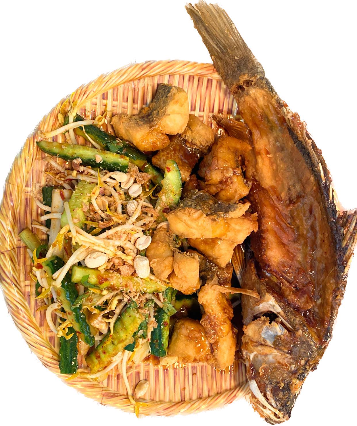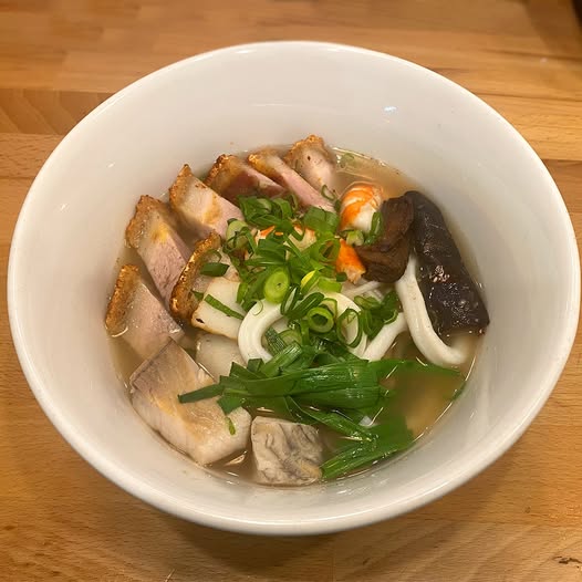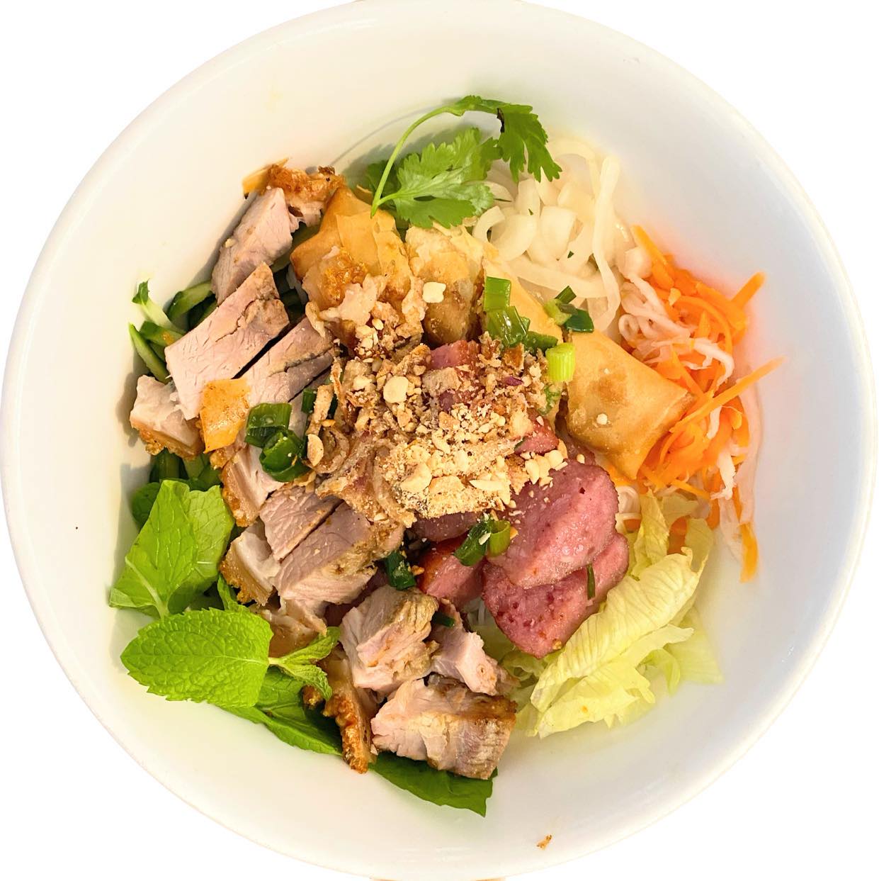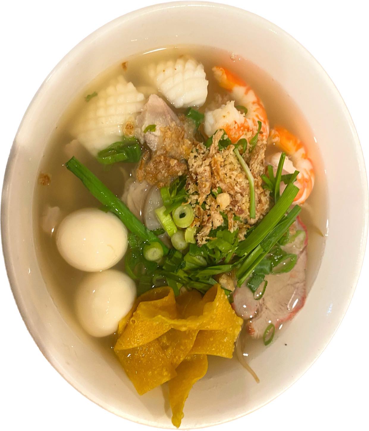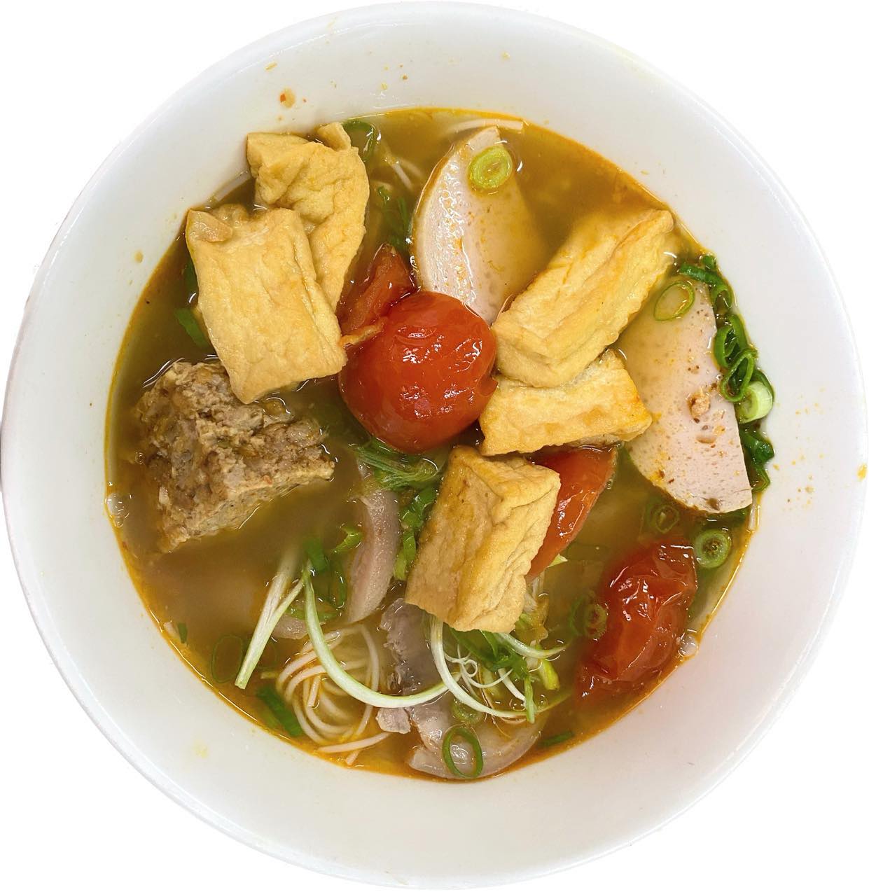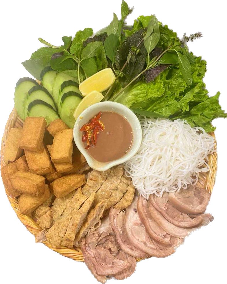 Vermicelli with cooked pork, fish cake, tofu, fermented shrimp paste sauce