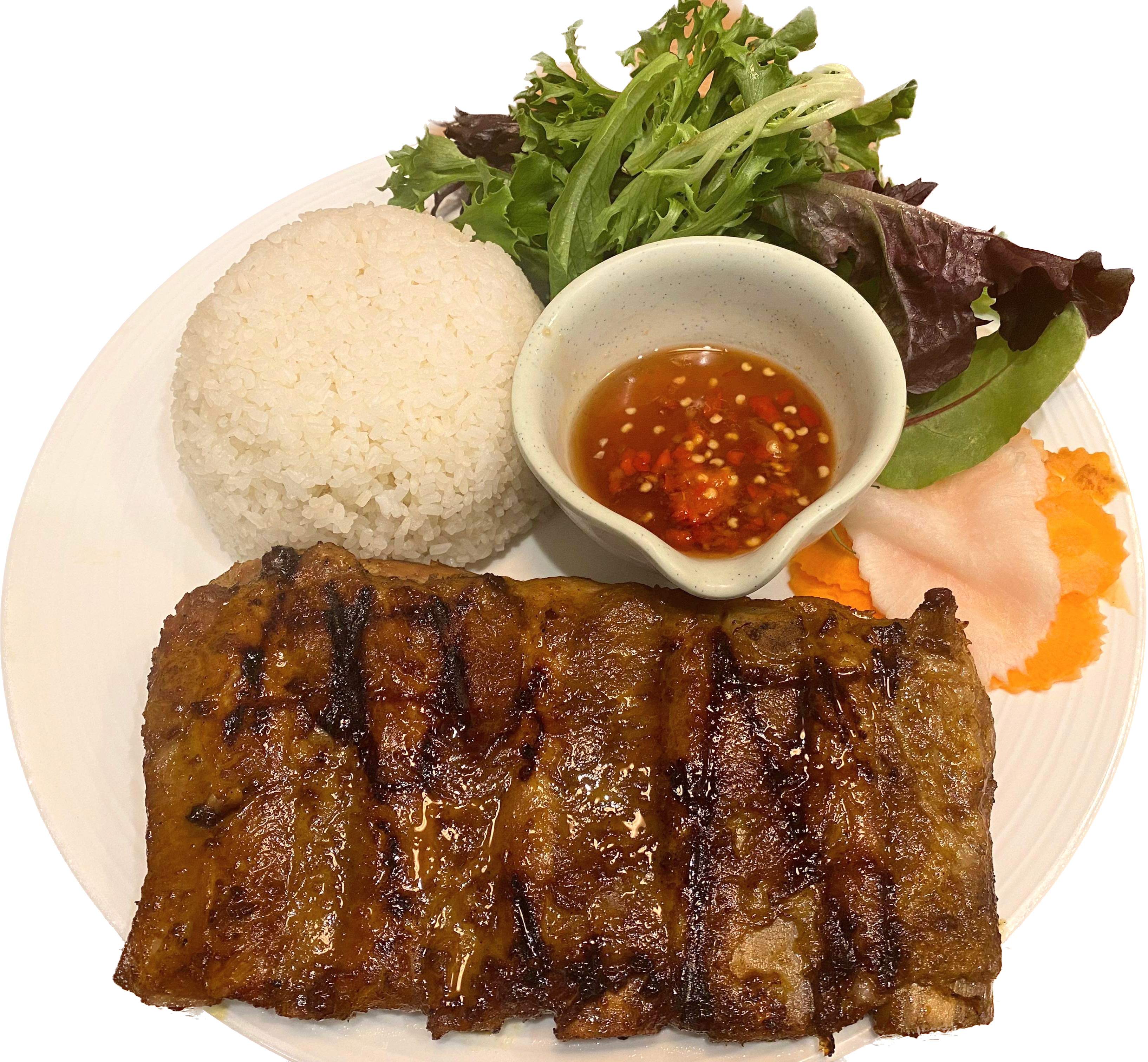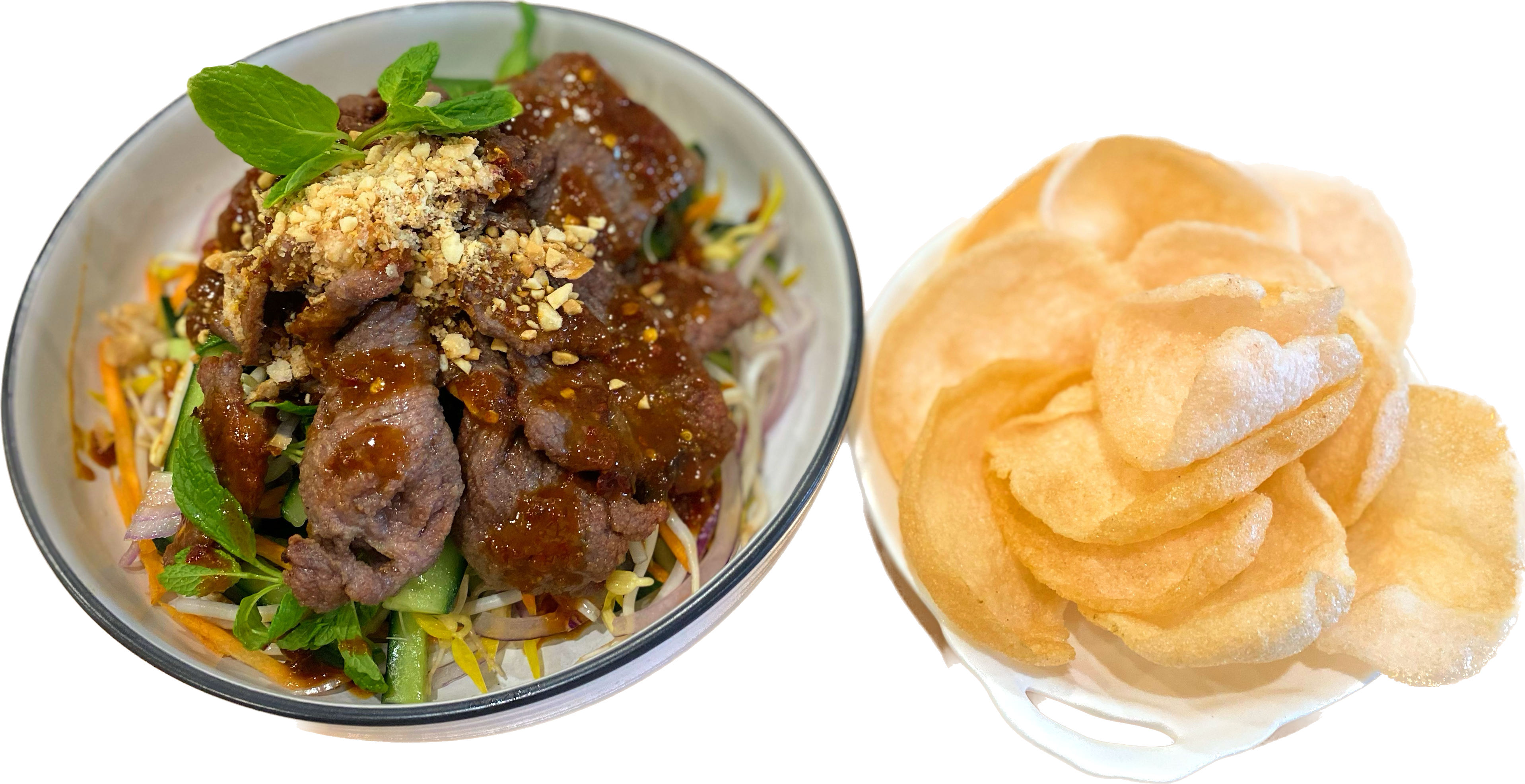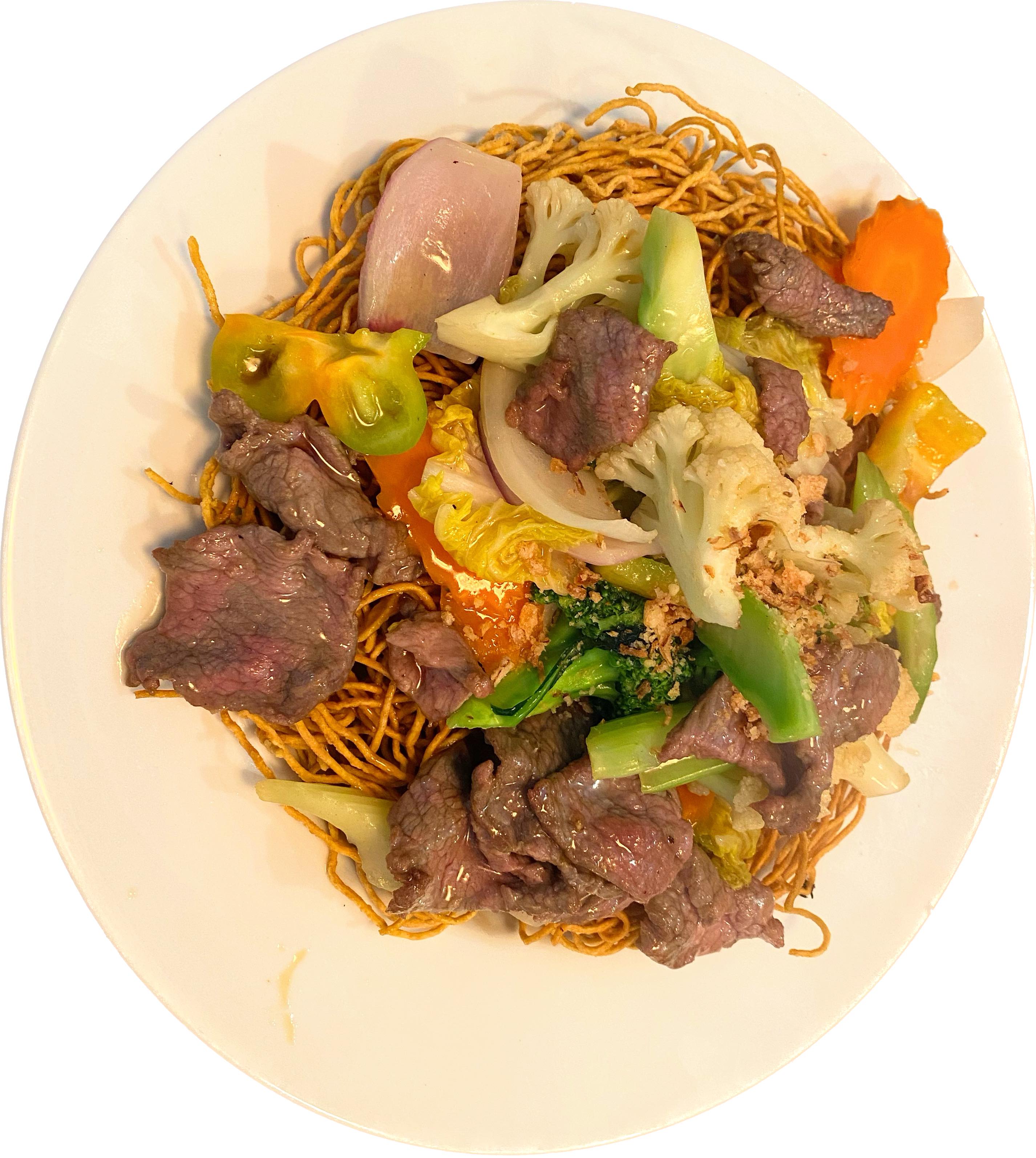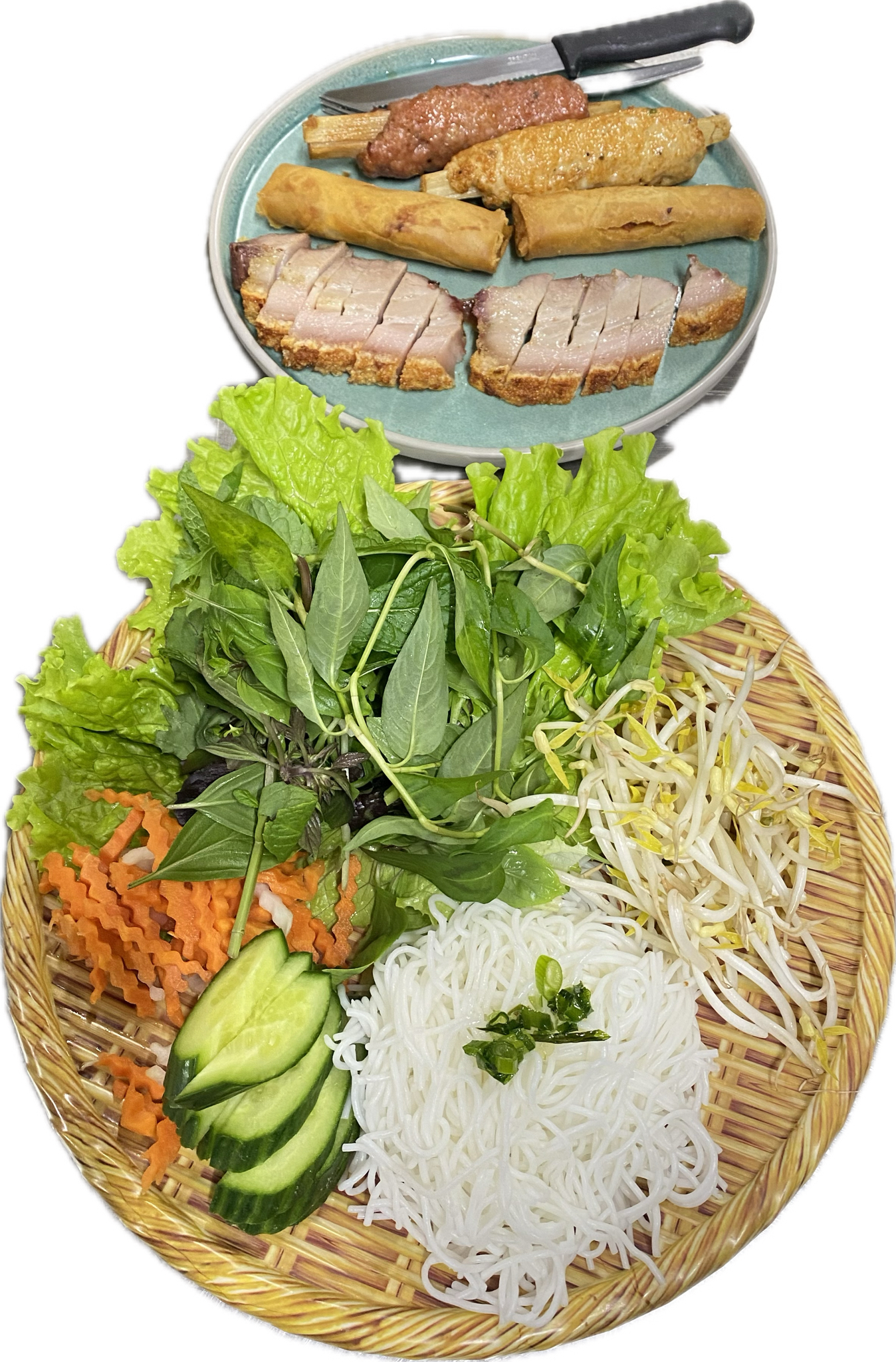 Vermicelli with cooked pork, fish cake, tofu, fermented shrimp paste sauce