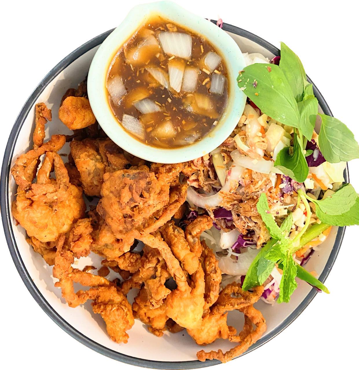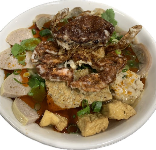 Whole soft shell crab Steamed Crab Loaf, Tofu, Pork Hock Slice, Prawn ball, Vietnamese Ham and Tomatoes